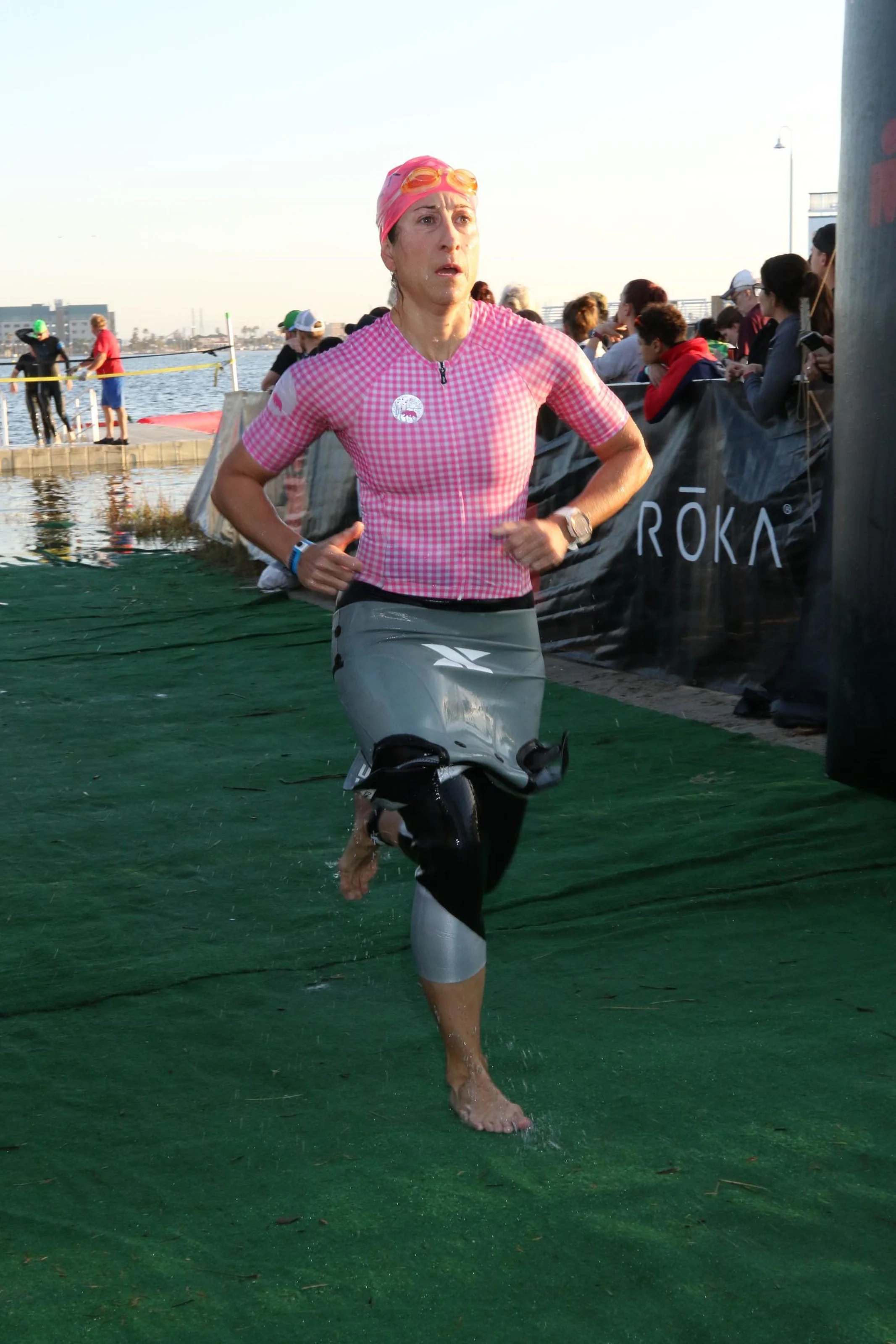I transitioned super fast from exit of swim into transition shoot. I was so focused on removing my wetsuit while running that I completely forgot to pee on my way into T1, swim-to-bike. When I arrived to my bike, I realized this, so tried to pee while putting shoes and helmet which slowed me down.