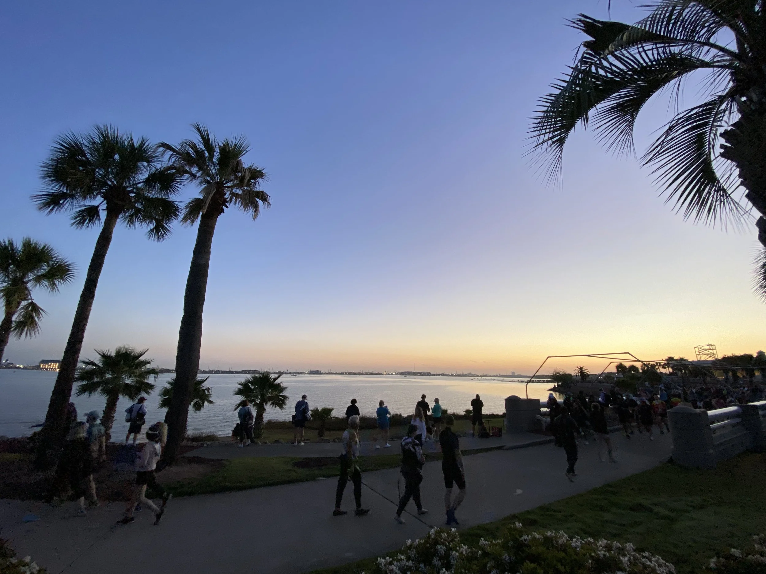 The swim was absolute perfection! We had a stunning sunrise over the Galveston’s Bay that set my intention for the entire race. Air temp at gun time was 65F with calm winds and water temp 70F. Since Galveston is an island surrounded by the Gulf of Mexico, the water is super salty and clear.